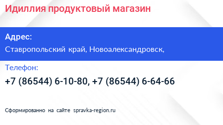 Идиллия, продуктовый магазин по адресу Ставропольский край, Новоалександровск, в дальнейшем Организация, размещена в следующих категориях: