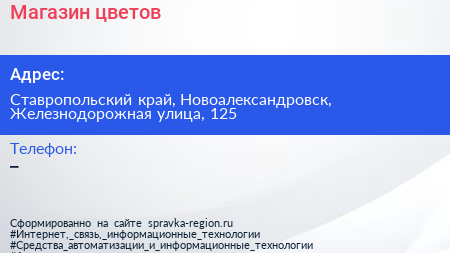 Магазин цветов по адресу Ставропольский край, Новоалександровск, Железнодорожная улица, 125 в дальнейшем Организация, размещена в следующих категориях: