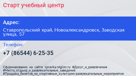 Старт, учебный центр по адресу Ставропольский край, Новоалександровск, Заводская улица, 57 в дальнейшем Организация, размещена в следующих категориях: