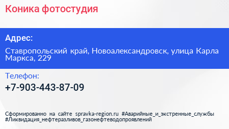 Коника, фотостудия по адресу Ставропольский край, Новоалександровск, улица Карла Маркса, 229 в дальнейшем Организация, размещена в следующих категориях: