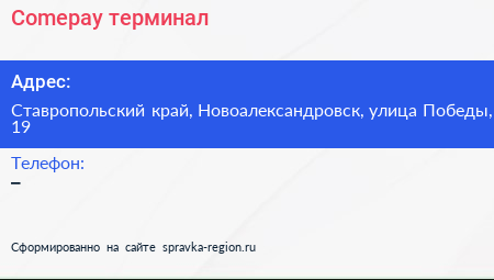 Comepay, терминал по адресу Ставропольский край, Новоалександровск, улица Победы, 19 в дальнейшем Организация, размещена в следующих категориях: