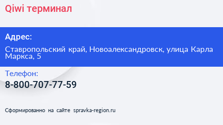 Qiwi, терминал по адресу Ставропольский край, Новоалександровск, улица Карла Маркса, 5 в дальнейшем Организация, размещена в следующих категориях: