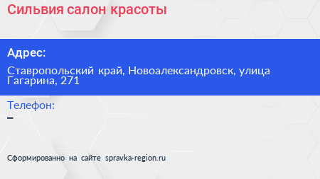 Сильвия, салон красоты по адресу Ставропольский край, Новоалександровск, улица Гагарина, 271 в дальнейшем Организация, размещена в следующих категориях: