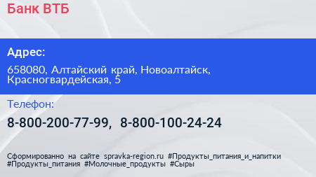 Банк ВТБ по адресу 658080, Алтайский край, Новоалтайск, Красногвардейская, 5 в дальнейшем Организация, размещена в следующих категориях:
