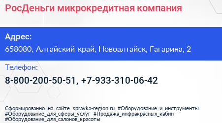 РосДеньги, микрокредитная компания по адресу 658080, Алтайский край, Новоалтайск, Гагарина, 2 в дальнейшем Организация, размещена в следующих категориях: