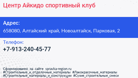 Центр Айкидо, спортивный клуб по адресу 658080, Алтайский край, Новоалтайск, Парковая, 2 в дальнейшем Организация, размещена в следующих категориях: