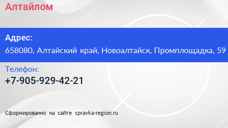 Алтайлом по адресу 658080, Алтайский край, Новоалтайск, Промплощадка, 59 в дальнейшем Организация, размещена в следующих категориях: