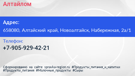 Алтайлом по адресу 658080, Алтайский край, Новоалтайск, Набережная, 2а/1 в дальнейшем Организация, размещена в следующих категориях: