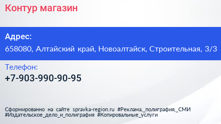 Контур, магазин по адресу 658080, Алтайский край, Новоалтайск, Строительная, 3/3 в дальнейшем Организация, размещена в следующих категориях: