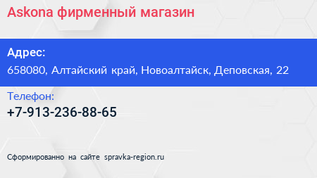 Askona, фирменный магазин по адресу 658080, Алтайский край, Новоалтайск, Деповская, 22 в дальнейшем Организация, размещена в следующих категориях: