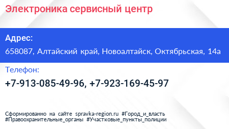 Электроника, сервисный центр по адресу 658087, Алтайский край, Новоалтайск, Октябрьская, 14а в дальнейшем Организация, размещена в следующих категориях: