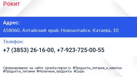 Рокит по адресу 658060, Алтайский край, Новоалтайск, Катаева, 10 в дальнейшем Организация, размещена в следующих категориях:
