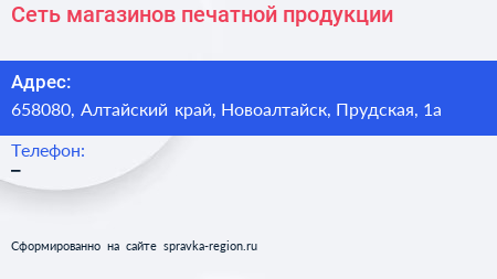 Сеть магазинов печатной продукции по адресу 658080, Алтайский край, Новоалтайск, Прудская, 1а в дальнейшем Организация, размещена в следующих категориях: