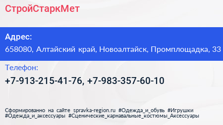 СтройСтаркМет по адресу 658080, Алтайский край, Новоалтайск, Промплощадка, 33 в дальнейшем Организация, размещена в следующих категориях: