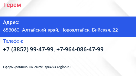 Терем по адресу 658060, Алтайский край, Новоалтайск, Бийская, 22 в дальнейшем Организация, размещена в следующих категориях:
