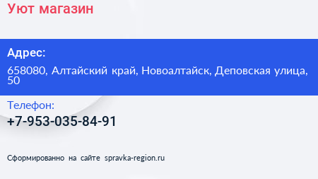 Уют, магазин по адресу 658080, Алтайский край, Новоалтайск, Деповская улица, 50 в дальнейшем Организация, размещена в следующих категориях: