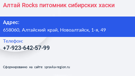 Алтай Rocks, питомник сибирских хаски по адресу 658060, Алтайский край, Новоалтайск, 1-я, 49 в дальнейшем Организация, размещена в следующих категориях: