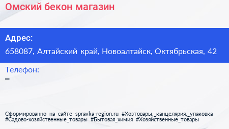 Омский бекон, магазин по адресу 658087, Алтайский край, Новоалтайск, Октябрьская, 42 в дальнейшем Организация, размещена в следующих категориях: