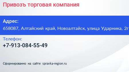 Привозъ, торговая компания по адресу 658087, Алтайский край, Новоалтайск, улица Ударника, 2г в дальнейшем Организация, размещена в следующих категориях: