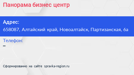 Панорама, бизнес-центр по адресу 658087, Алтайский край, Новоалтайск, Партизанская, 6а в дальнейшем Организация, размещена в следующих категориях: