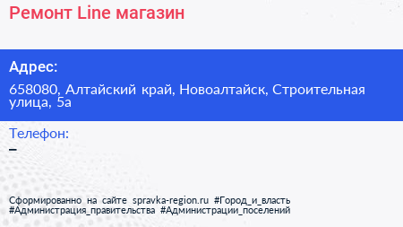 Ремонт-Line, магазин по адресу 658080, Алтайский край, Новоалтайск, Строительная улица, 5а в дальнейшем Организация, размещена в следующих категориях:
