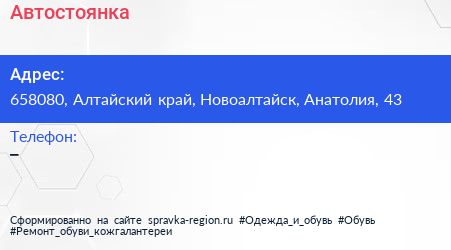 Автостоянка по адресу 658080, Алтайский край, Новоалтайск, Анатолия, 43 в дальнейшем Организация, размещена в следующих категориях: