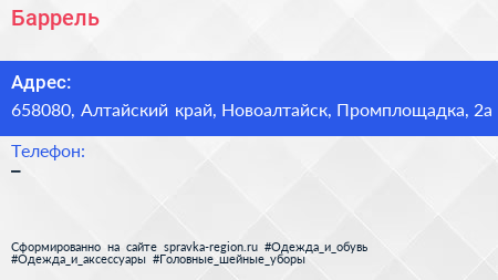 Баррель по адресу 658080, Алтайский край, Новоалтайск, Промплощадка, 2а в дальнейшем Организация, размещена в следующих категориях: