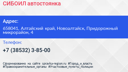 СИБОИЛ, автостоянка по адресу 658041, Алтайский край, Новоалтайск, Придорожный микрорайон, 4 в дальнейшем Организация, размещена в следующих категориях: