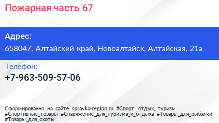 Пожарная часть №67 по адресу 658047, Алтайский край, Новоалтайск, Алтайская, 21а в дальнейшем Организация, размещена в следующих категориях: