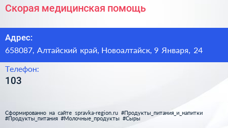Скорая медицинская помощь по адресу 658087, Алтайский край, Новоалтайск, 9 Января, 24 в дальнейшем Организация, размещена в следующих категориях: