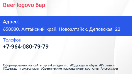 Beer-logovo, бар по адресу 658080, Алтайский край, Новоалтайск, Деповская, 22 в дальнейшем Организация, размещена в следующих категориях: