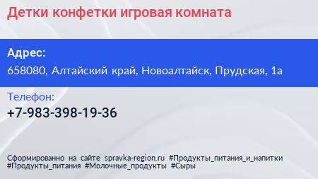 Детки конфетки, игровая комната по адресу 658080, Алтайский край, Новоалтайск, Прудская, 1а в дальнейшем Организация, размещена в следующих категориях: