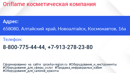 Oriflame, косметическая компания по адресу 658080, Алтайский край, Новоалтайск, Космонавтов, 16а в дальнейшем Организация, размещена в следующих категориях: