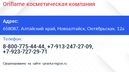 Oriflame, косметическая компания по адресу 658087, Алтайский край, Новоалтайск, Октябрьская, 12а в дальнейшем Организация, размещена в следующих категориях: