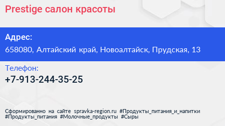 Prestige, салон красоты по адресу 658080, Алтайский край, Новоалтайск, Прудская, 13 в дальнейшем Организация, размещена в следующих категориях: