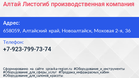 Алтай-Листогиб, производственная компания по адресу 658059, Алтайский край, Новоалтайск, Моховая 2-я, 36 в дальнейшем Организация, размещена в следующих категориях: