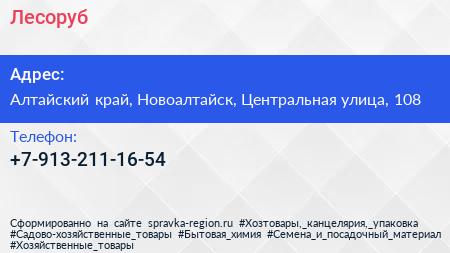 Лесоруб по адресу Алтайский край, Новоалтайск, Центральная улица, 108 в дальнейшем Организация, размещена в следующих категориях: