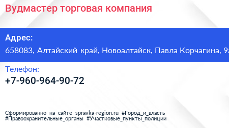 Вудмастер, торговая компания по адресу 658083, Алтайский край, Новоалтайск, Павла Корчагина, 9а в дальнейшем Организация, размещена в следующих категориях: