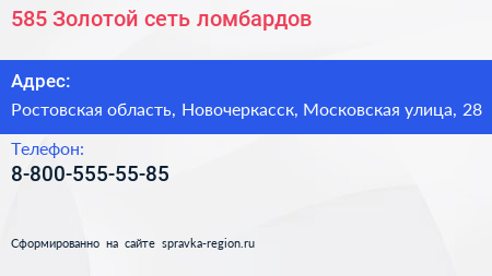 585*Золотой, сеть ломбардов по адресу Ростовская область, Новочеркасск, Московская улица, 28 в дальнейшем Организация, размещена в следующих категориях: