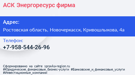 АСК-Энергоресурс, фирма в Новочеркасске