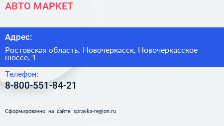 АВТО МАРКЕТ по адресу Ростовская область, Новочеркасск, Новочеркасское шоссе, 1 в дальнейшем Организация, размещена в следующих категориях: