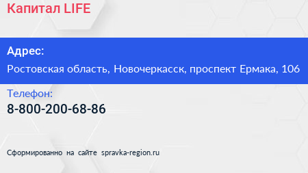 Капитал LIFE по адресу Ростовская область, Новочеркасск, проспект Ермака, 106 в дальнейшем Организация, размещена в следующих категориях: