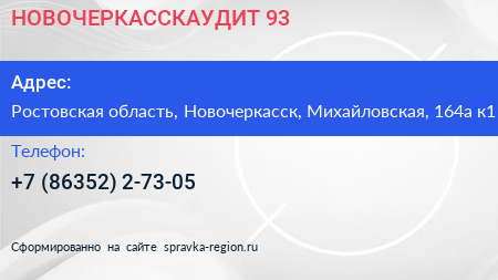 НОВОЧЕРКАССКАУДИТ-93 по адресу Ростовская область, Новочеркасск, Михайловская, 164а к1 в дальнейшем Организация, размещена в следующих категориях: