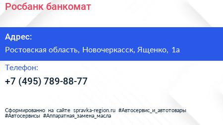Росбанк, банкомат по адресу Ростовская область, Новочеркасск, Ященко, 1а в дальнейшем Организация, размещена в следующих категориях: