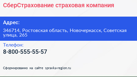 СберСтрахование, страховая компания по адресу 346714, Ростовская область, Новочеркасск, Советская улица, 265 в дальнейшем Организация, размещена в следующих категориях: