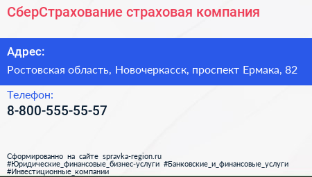 СберСтрахование, страховая компания по адресу Ростовская область, Новочеркасск, проспект Ермака, 82 в дальнейшем Организация, размещена в следующих категориях:
