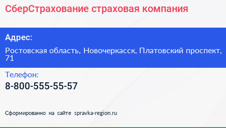 СберСтрахование, страховая компания по адресу Ростовская область, Новочеркасск, Платовский проспект, 71 в дальнейшем Организация, размещена в следующих категориях: