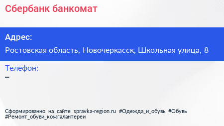 Сбербанк, банкомат по адресу Ростовская область, Новочеркасск, Школьная улица, 8 в дальнейшем Организация, размещена в следующих категориях: