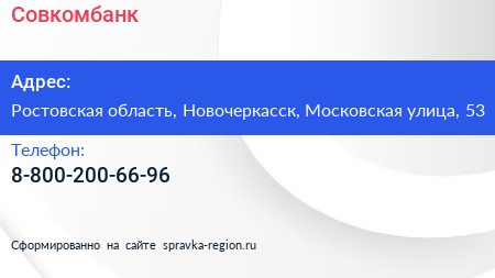 Совкомбанк по адресу Ростовская область, Новочеркасск, Московская улица, 53 в дальнейшем Организация, размещена в следующих категориях: