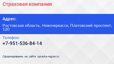 Страховая компания по адресу Ростовская область, Новочеркасск, Платовский проспект, 120 в дальнейшем Организация, размещена в следующих категориях: